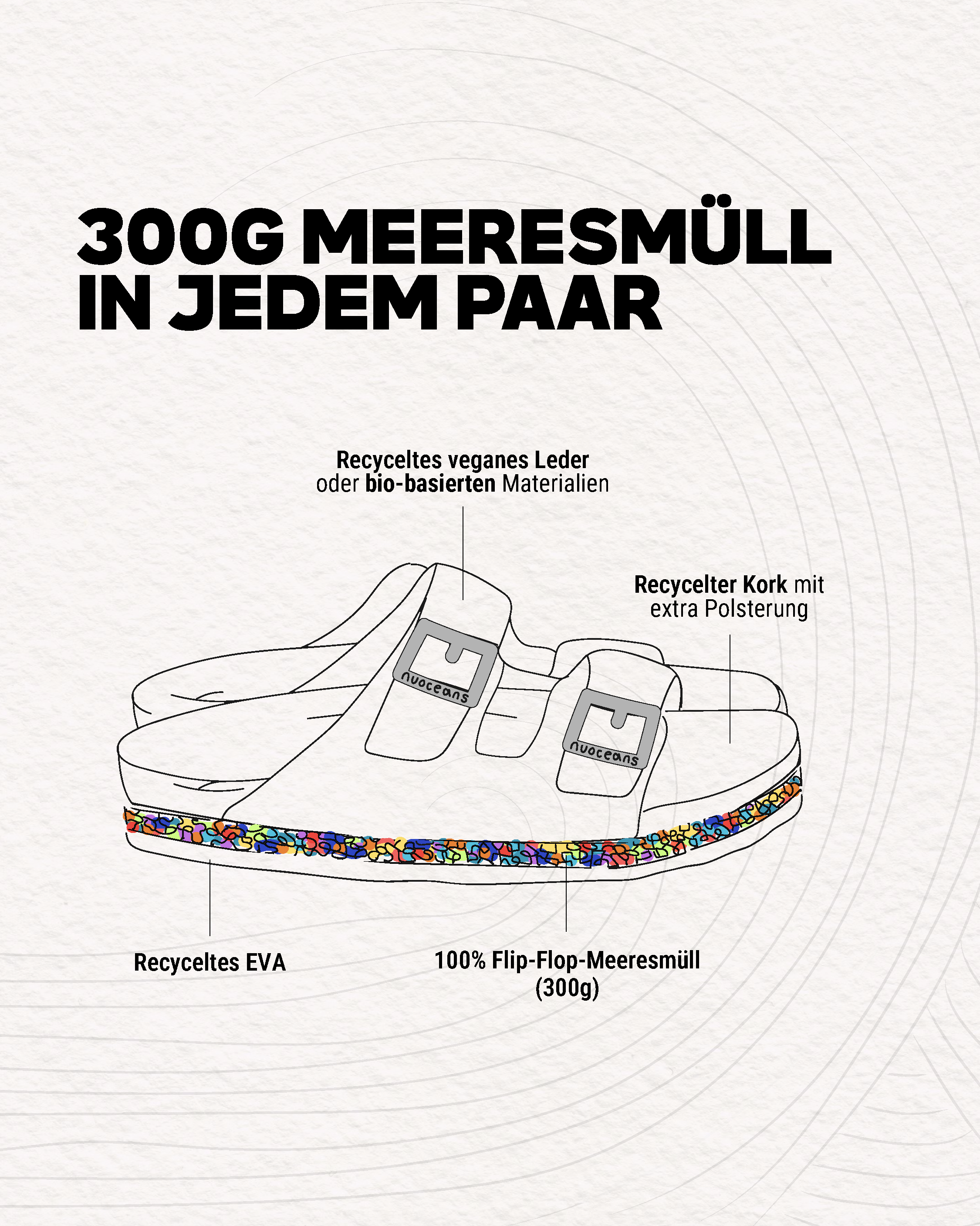 Angespülte Flip-Flops an Stränden haben uns zum Umdenken bewegt. Wir retten Meeresmüll und verwandeln ihn in recycelte, bequeme, vegane Sandalen.