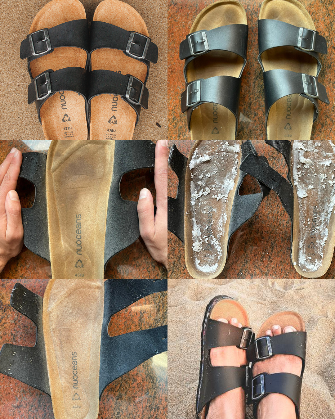 300g of ocean waste saved with every pair. Made from recycled cork, EVA, and PVC, and fully recyclable to keep the cycle going.