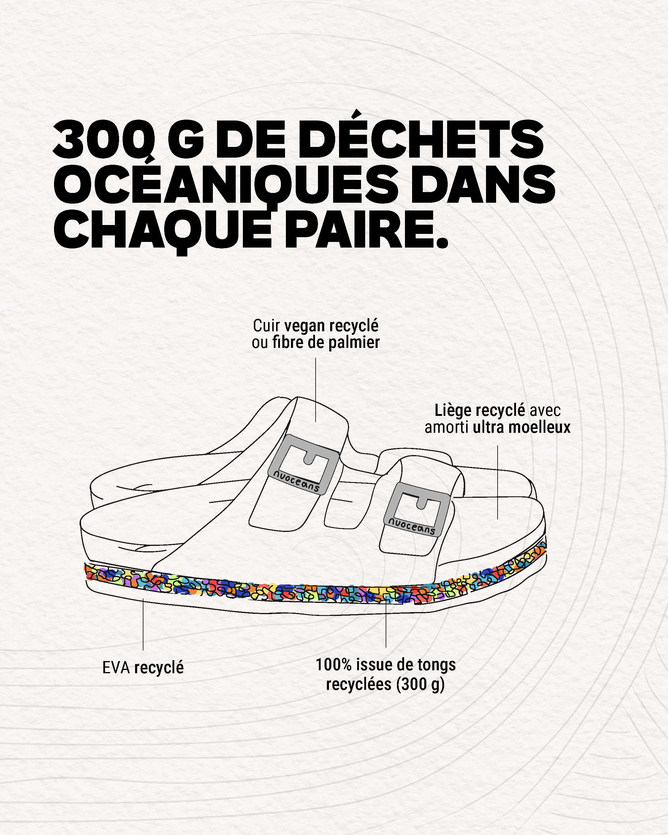 Chaque paire permet de revaloriser environ 300 g de déchets de tongs.