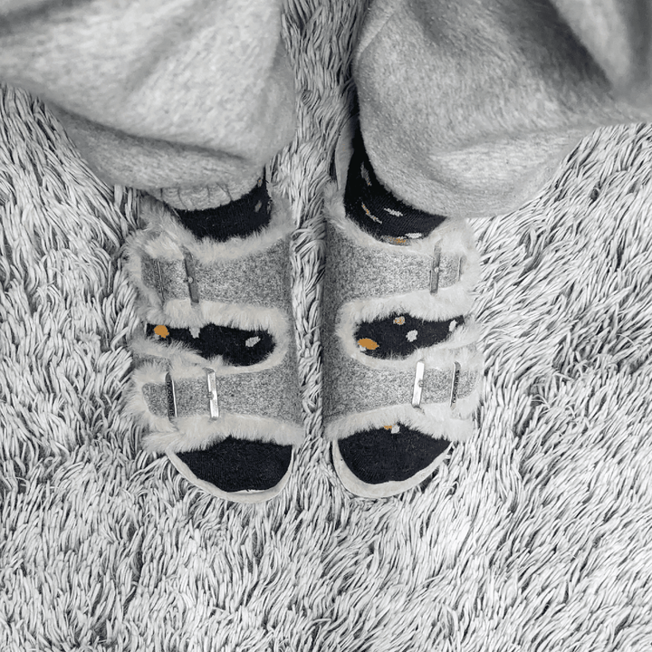 Semelle intérieur: 100 % liège recyclé, recouverte d'une couche de fourrure en polyester ultra douce et confortable