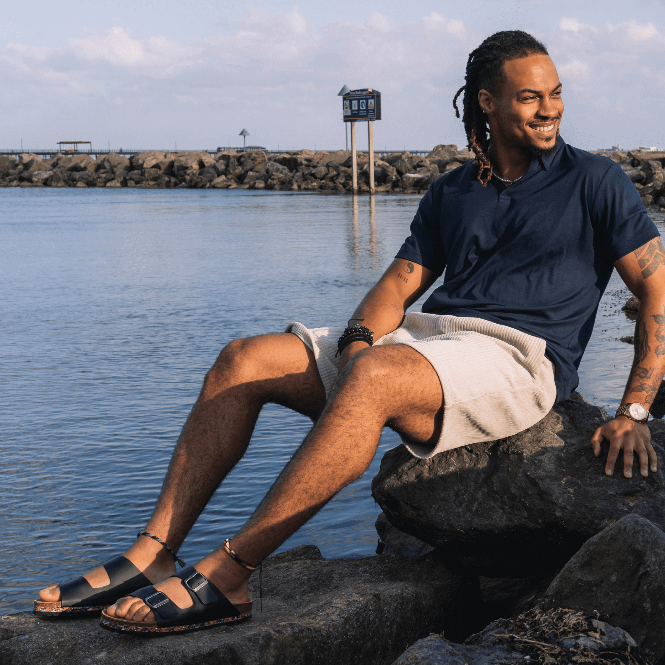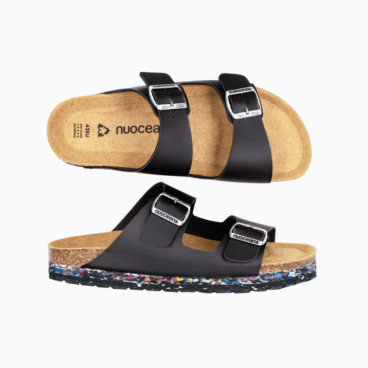 LA NUO ONYX : unisexe, végane et fabriquée à partir de déchets marins – notre best-seller en noir est un favori pour une bonne raison. Cette paire incontournable, que l’on ressort saison après saison, est assez élégante pour un dîner, assez décontractée pour la plage ou un café sur le pouce, et tellement confortable que tu oublieras que tu les portes. Sa semelle intermédiaire iconique et colorée, conçue à partir de tongs récupérées dans les océans, est ta signature en tant que membre de la famille nuoceans.